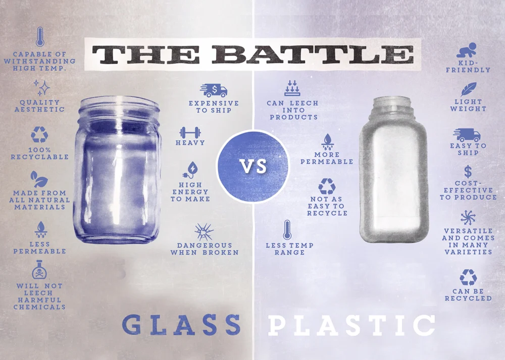 Use of the plastic bottles in production and disposal leads to serious problems of air, water, and land pollution. Plastic can take hundreds of years in a landfill to degrade and in the process can produce toxic microplastics. Microplastics present in the ocean are known to be lethal to marine life and can pollute the environment. However, glass material is harmless and is not likely to pollute the surroundings by emitting bad chemicals.